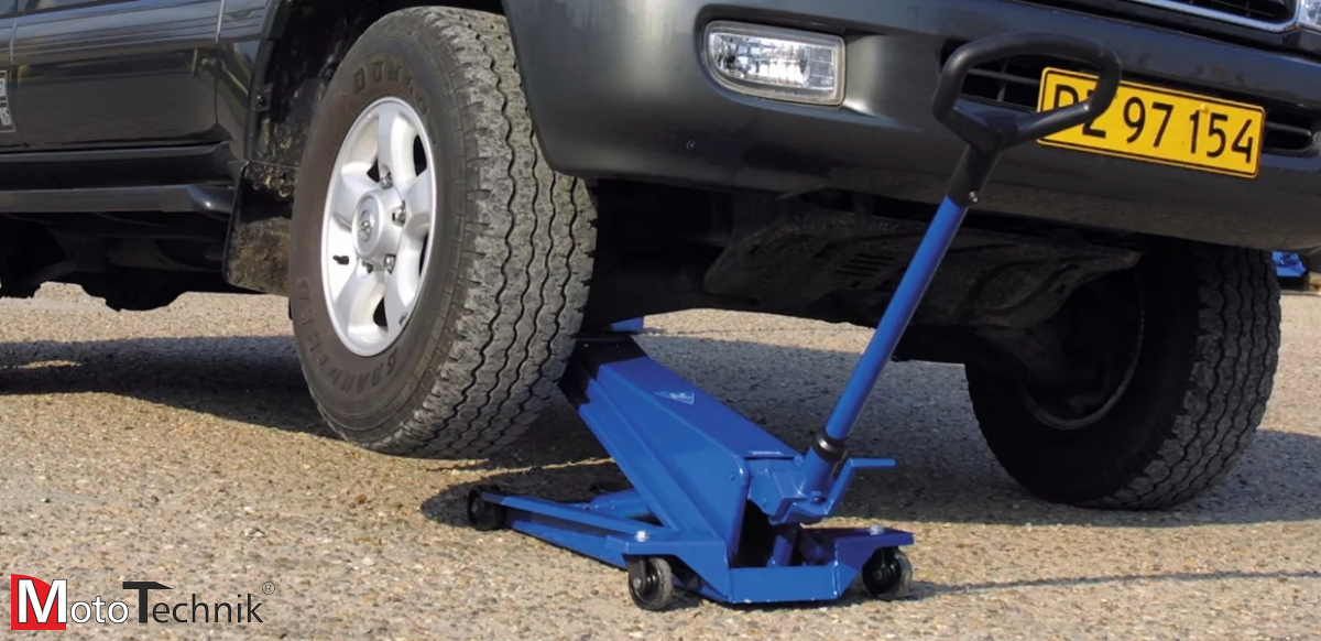 wyposażony jest w nożną pompę dobiegową, przyspieszającą dojście do punktu podporu samochodu.