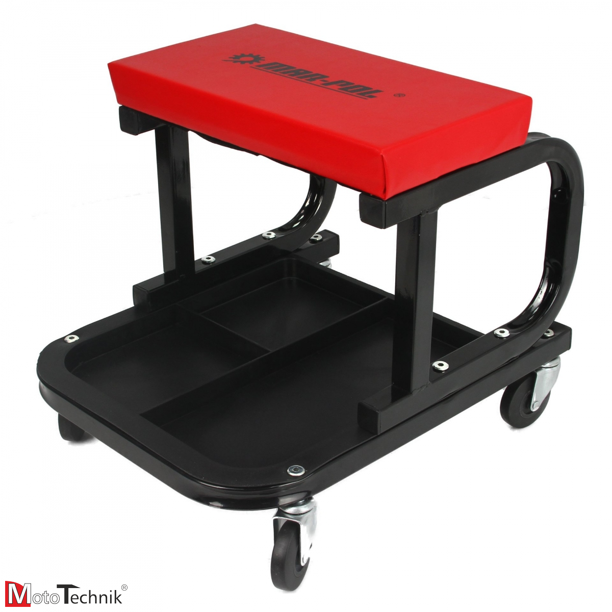 Niezwykle przydatny taboret do warsztatu, posiada szerokie siedzisko, jest niezwykle wygodny i mobilny - dzięki 4 kółkom 360 stopni