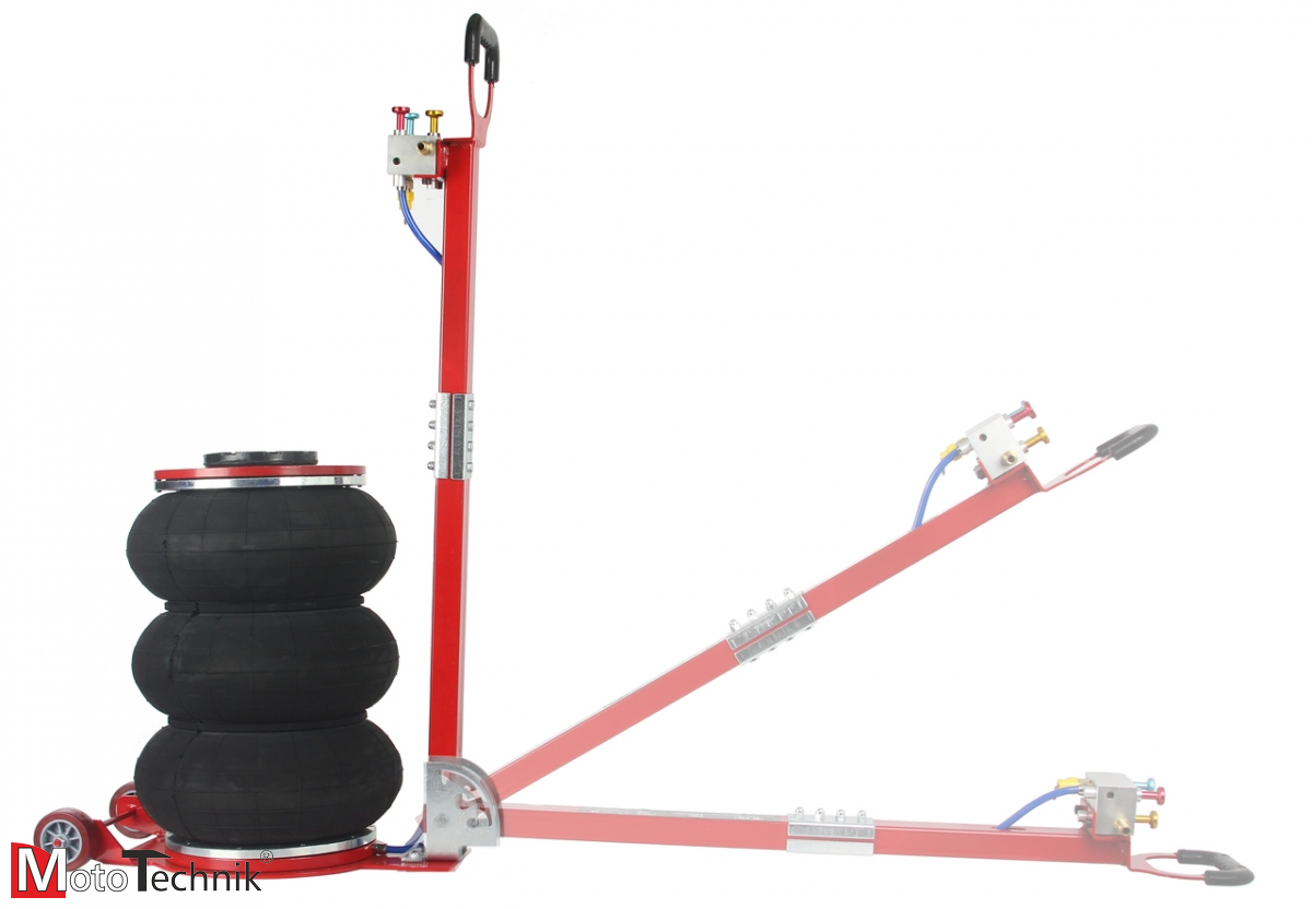 - Podnośnik wyposażony w zawór podciśnienia umożliwiający spuszczenie powietrza z podnośnika do wysokości minimalnej bez nacisku na poduszkę. Dzięki takiemu rozwiązaniu wyjeżdżamy z pod samochodu bez żadnego szarpania czy naciskania na poduszkę w obawie że coś uszkodzimy wyciągając podnośnik.
