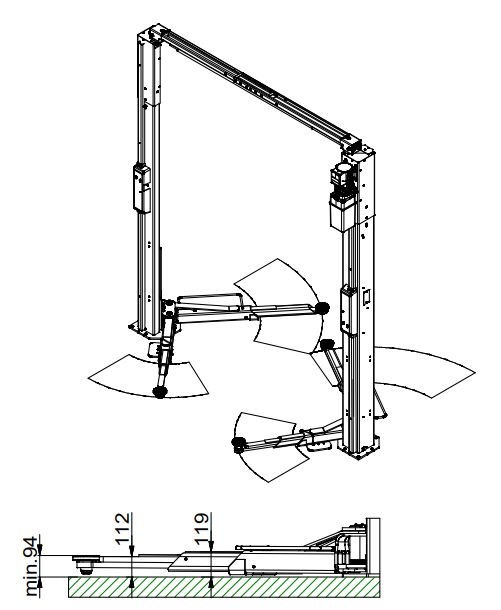 - Pod podnośnik wymagany jest jednolity fundament o min. grubości 200 mm wykonany w klasie C20/25 (B 25).