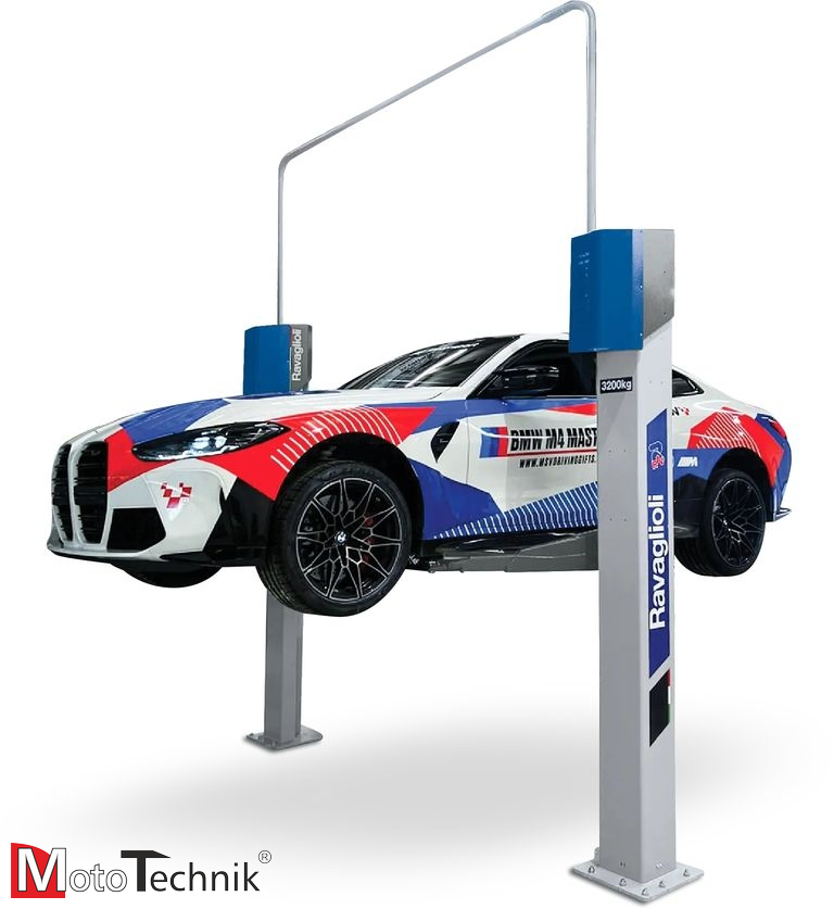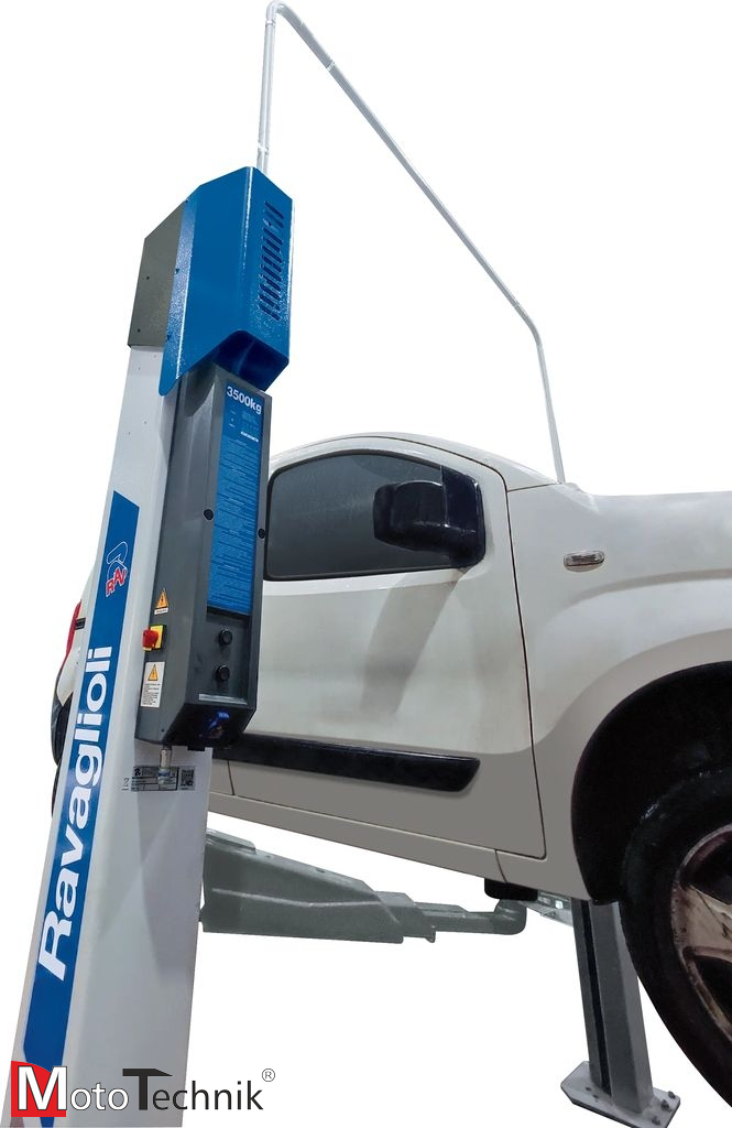 Dwukolumnowy podnośnik śrubowy, elektromechaniczny RAVAGLIOLI KPX35 przeznaczony do podejmowania pojazdów osobowych, SUV, terenowych i dostawczych o masie do 3500 kg.