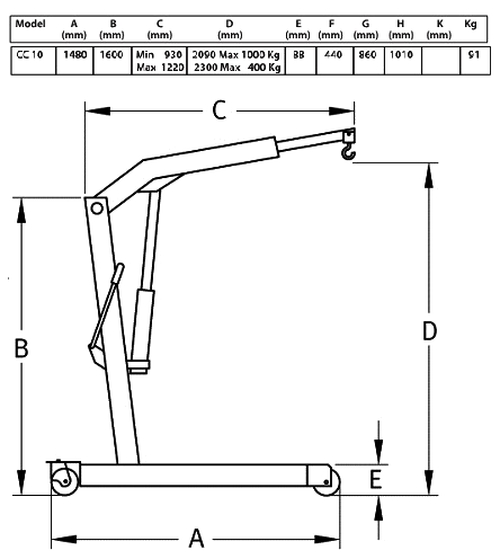 Żuraw warsztatowy COMPAC CC 10 o udźwigu max. do 1000 kg.