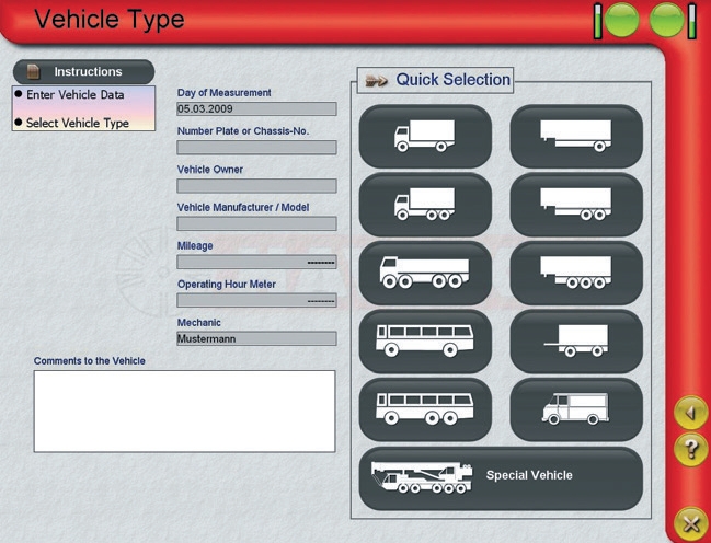 Pomiar odbywa się w tzw. stanie jazdy (brak konieczności podnoszenia osi). Wyniki pomiaru wyświetlane są bezpośrednio na monitorze, z uwzględnieniem wartości przed regulacją i po regulacji. Użytkownik jest prowadzony przez pomiar krok po kroku dzięki wyraźnym wskazówkom graficznym. Urządzenie ma możliwość adaptacji do danego poziomu stanowiska pomiarowego co czyni je urządzeniem mobilnym. Urządzenie przystosowane do obsługi przez jedną osobę.