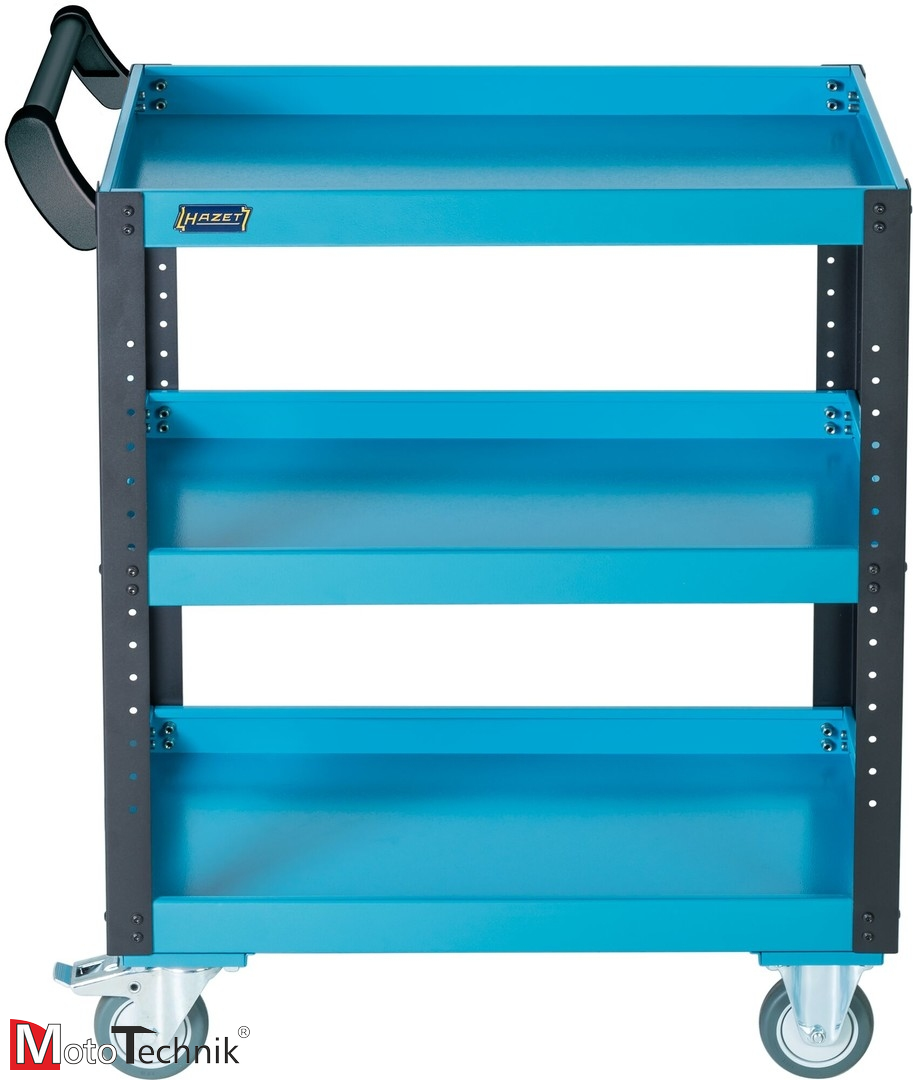 Duże kółka z łożyskami kulkowymi (x 100 mm), 2 kółka zwrotne (1 z podwójnym hamulcem), 2 kółka niekierowane