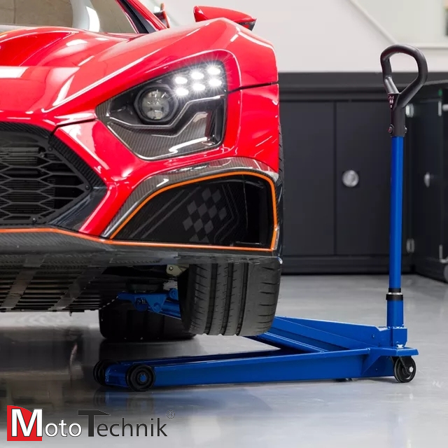 wyposażony jest w nożną pompę dobiegową, przyspieszającą dojście do punktu podporu samochodu.