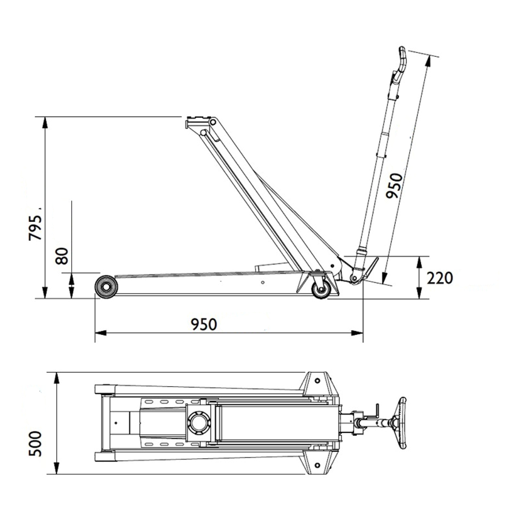 wyposażony jest w nożną pompę dobiegową, przyspieszającą dojście do punktu podporu samochodu.