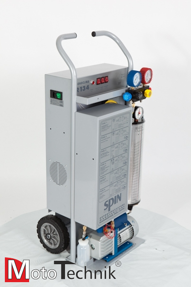 Manualne urządzenie SPIN - MONOCLIMA do obsługi układów klimatyzacji z czynnikiem R134a w ciężarówkach, minibusach, pojazdach rolniczych i budowlanych oraz w chłodnictwie mobilnym.