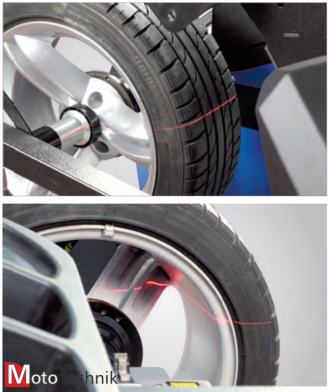 Wyważarka i sprzęt diagnostyczny z laserową technologią. Pięć kamer CCD skanujeoponę i felgę z różnych kierunków, wspomagane wiązką laserów ustawioną w układzie 3D. W jednym przebiegu pomiarowym wszystkie dane są sczytywane i ewentualne wady opony lub felgi są diagnozowane i udokumentowane z najwyższą dokładnością.