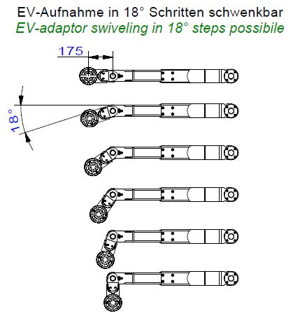 Podnośnik wyposażony jest w podwójne teleskopowe ramiona o niskim punkcie podnoszenia i obracaną przednią częścia ramion w zakresie 180 stopni, co zapewnia optymalną elastyczność i prześwit pod podwoziem w pojazdach elektrycznych.