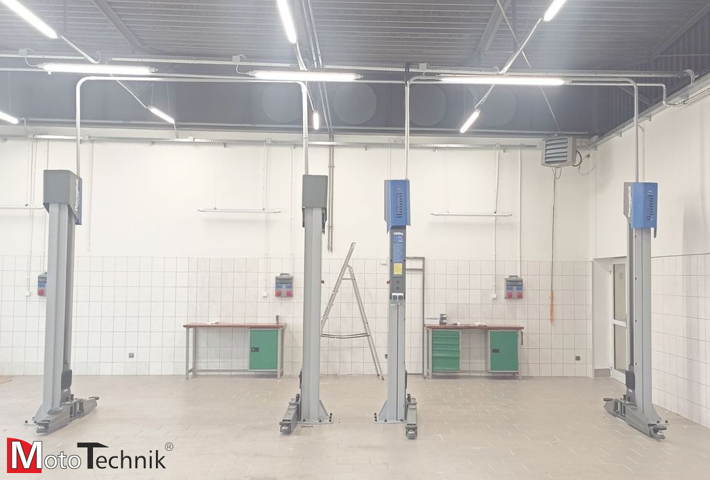 - Podnośnik posiada elektroniczną synchronizację ramion.