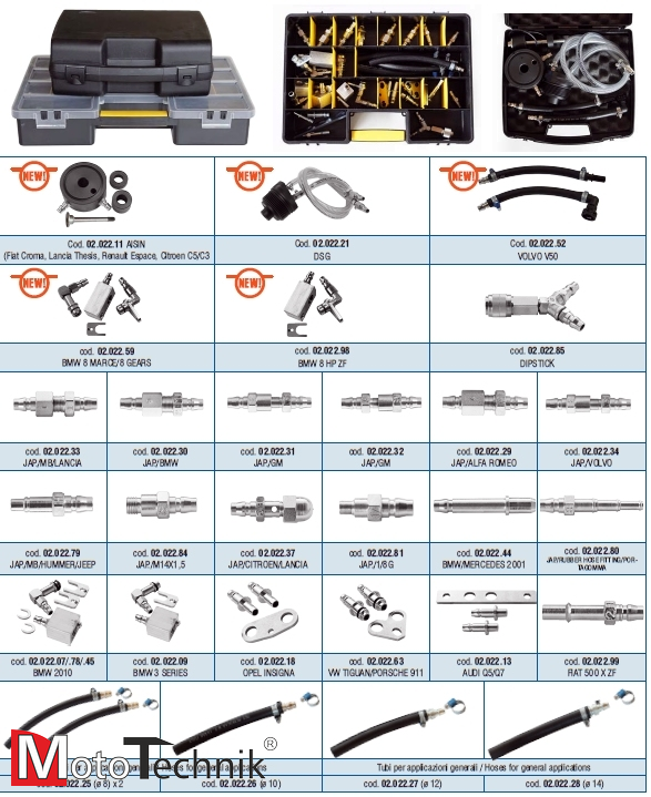 Cechy: w pełni automatyczny proces obsługowy procedura wymiany filtra oleju skrzyni 2 pompy oleju w celu minimalizacji mieszania starego oleju z nowym zbiorniki na nowy i zużyty olej o pojemności 30 l wygodne napełnianie/opróżnianie zbiorników oleju dzięki otwartej obudowie wagi elektroniczne starego oraz nowego oleju magnetyczny filtr oleju o przedłużonym działaniu pomiar temperatury oleju zestaw do obsługi przez bagnet kompensacja długości przewodów wygodne, podświetlane wzierniki starego i nowego oleju zestaw adapterów podłączeniowych wbudowana drukarka funkcja uzyskania temperatury eksploatacyjnej oleju wbudowana baza danych pojazdów (ilości, rodzaj oleju ATF) dotykowy kolorowy wyświetlacz LCD 5" możliwość edycji bazy danych