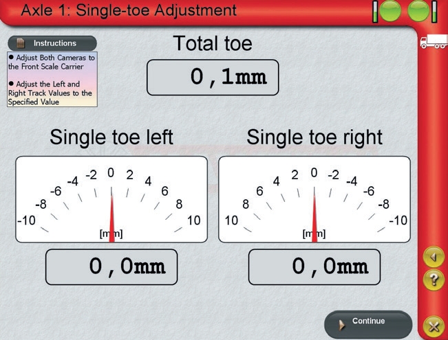 Pomiar odbywa się w tzw. stanie jazdy (brak konieczności podnoszenia osi). Wyniki pomiaru wyświetlane są bezpośrednio na monitorze, z uwzględnieniem wartości przed regulacją i po regulacji. Użytkownik jest prowadzony przez pomiar krok po kroku dzięki wyraźnym wskazówkom graficznym. Urządzenie ma możliwość adaptacji do danego poziomu stanowiska pomiarowego co czyni je urządzeniem mobilnym. Urządzenie przystosowane do obsługi przez jedną osobę.