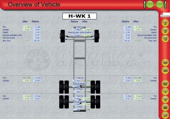 Umożliwia nowoczesne, bardzo precyzyjne i szybkie pomiary. Wysokie wymagania producentów samochodów w zakresie pomiarów geometrii kół pojazdów - w połączeniu z elastyczną i precyzyjną technologią pomiarową - dały firmie HAWEKA wskazówkę do dalszego rozwoju tej metody pomiaru. Wraz z AXIS4000 stworzono system pomiaru geometrii kół, który odpowiada wymaganym standardom precyzji prowadzenia i pomiaru systemów ustawiania kół samochodów ciężarowych.