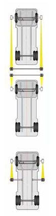 AXIS4000 działa z dwoma kamerami pomiarowymi umieszczonymi na kołach za pośrednictwem uchwytów, które w czasie rzeczywistym, odczytują położenie tablic umieszczonych przed i za pojazdem.