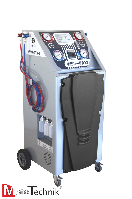 Automatyczne urządzenie SPIN - BREEZE X4 DUAL TOUCH Printer do obsługi układów klimatyzacji z czynnikiem R134a i HFO1234yf w samochodach osobowych, SUV, terenowych, dostawczych, ciężarowych oraz maszyn rolniczych i budowlanych.