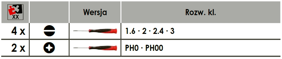 Cztery wkrętaki do śrub z nacięciem rowkowym 1,6 ∙ 2 ∙ 2,4 ∙ 3 mm